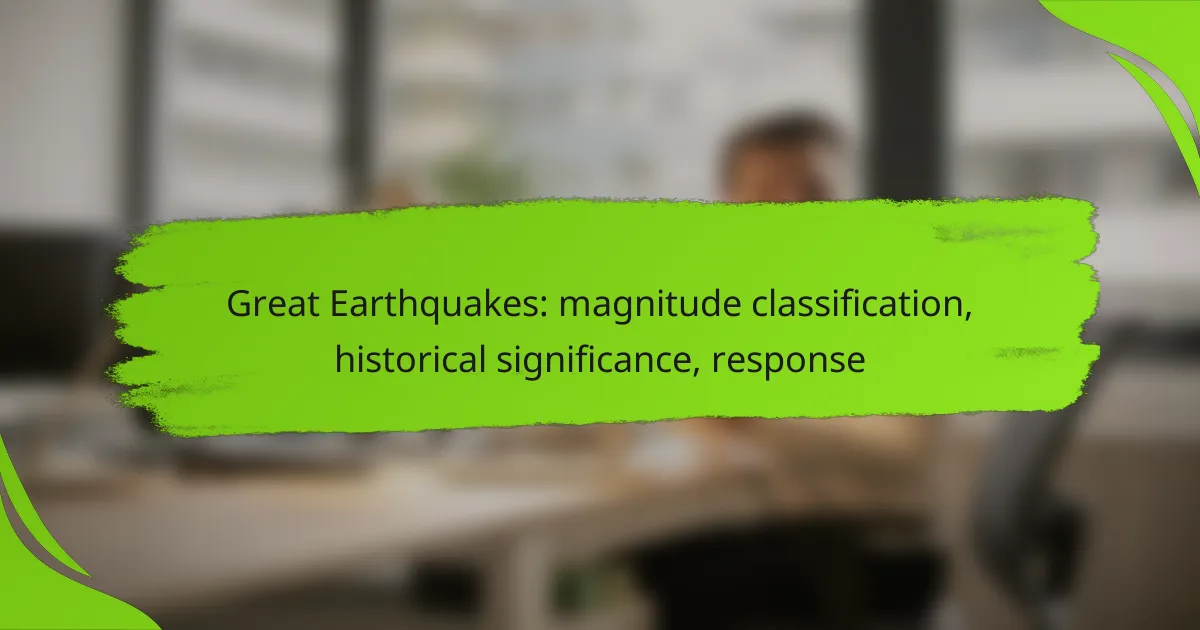 Earthquakes are classified by magnitude using various scales that measure the energy released during seismic events, which aids in assessing their potential impact on communities and infrastructure. Historically significant earthquakes, such as the 1906 San Francisco earthquake and the 2010 Haiti earthquake, have resulted in extensive damage and loss of life, highlighting the need for effective disaster response strategies. Regional responses to these disasters depend on preparedness, infrastructure resilience, and community engagement in disaster management practices.